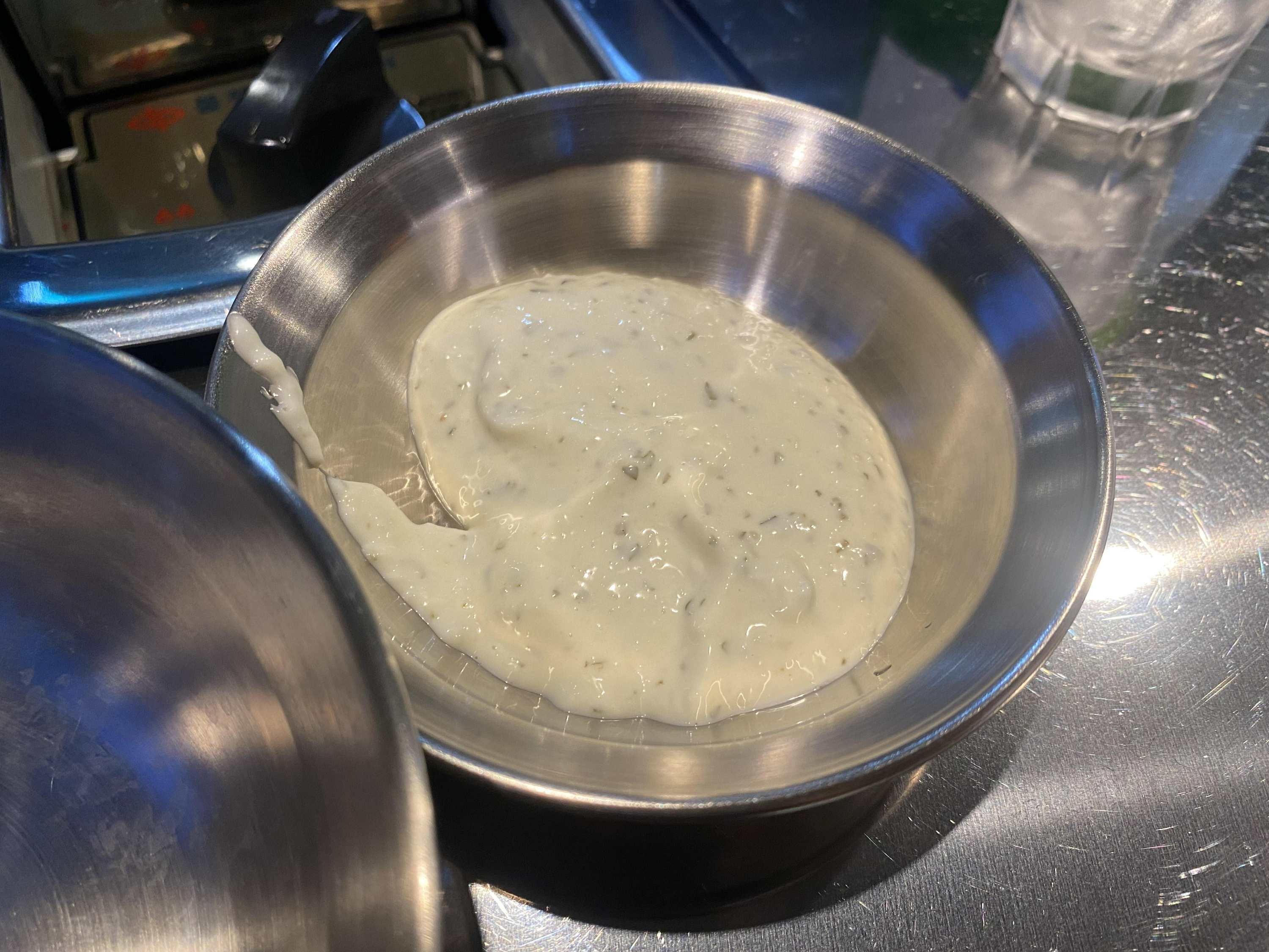 타르타르소스 같기도 한데, 사장님께서는 깻잎 + 김 + 쌈무 + 천사채 조합에 위 소스를 살짝 찍어먹으면 너무 맛있습니다.